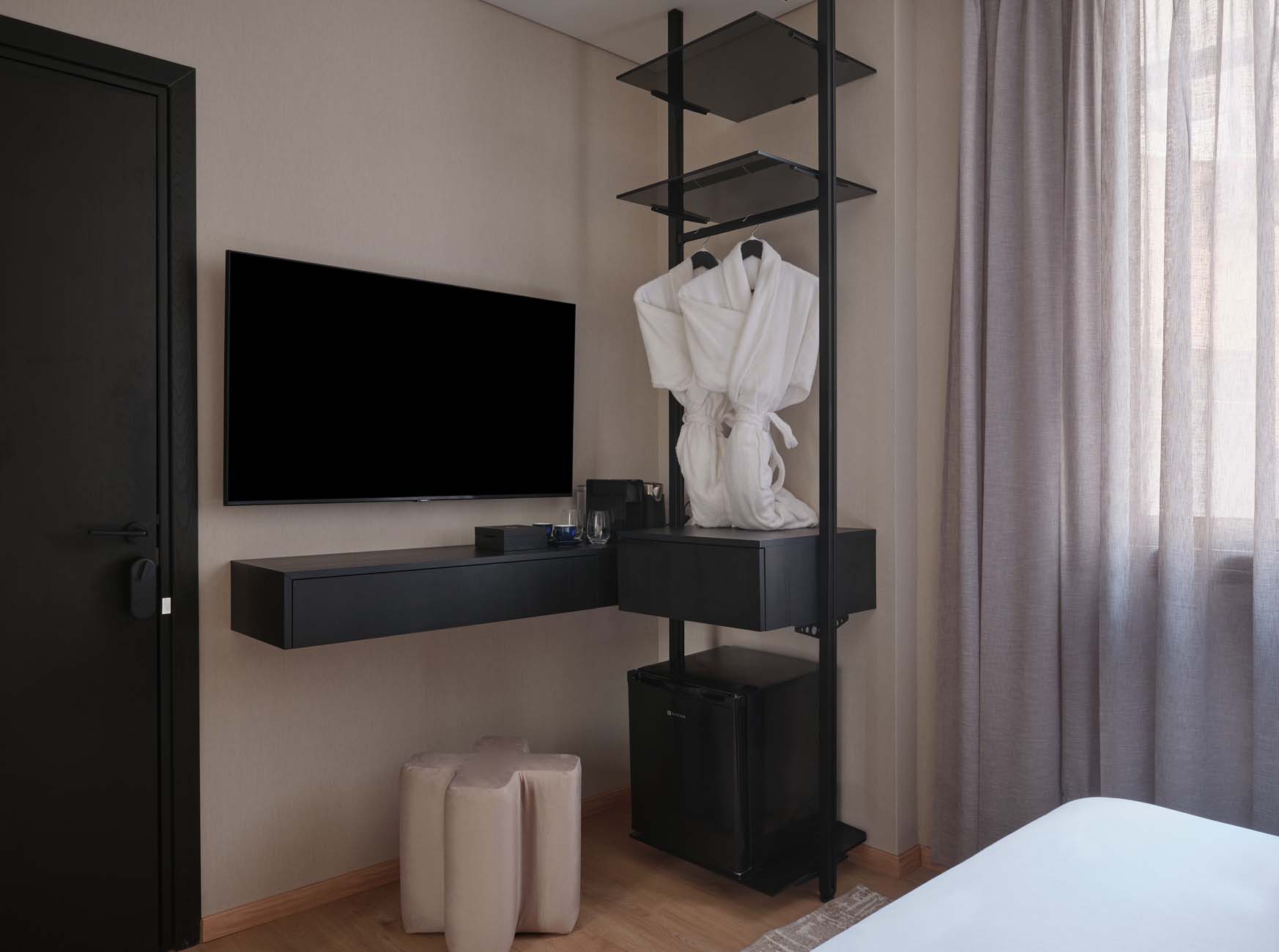 Step into a world of comfort a in our Compact Room. Thoughtfully designed with vibrant details, this cozy 20 m² space features modern amenities and stylish décor. Relax in the air-conditioned environment and enjoy the convenience of the minibar and the coffee maker.